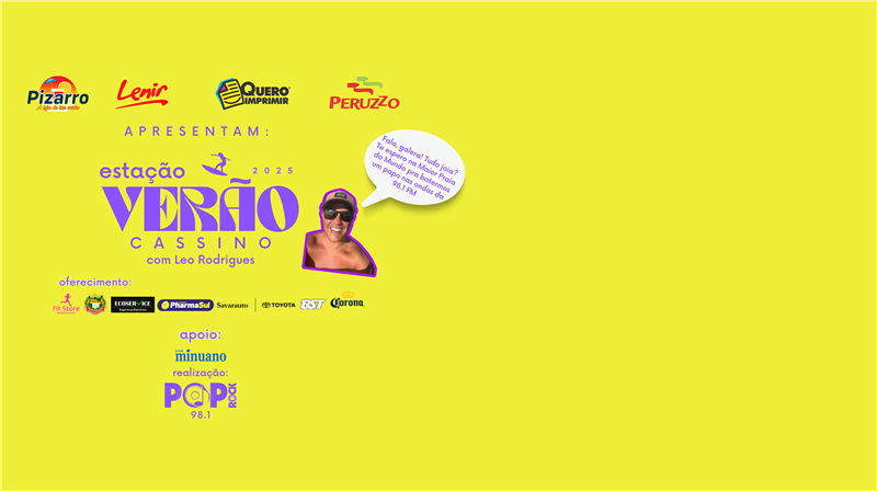Com muitas promoções, vouchers, brindes e um bate-papo nas ondas da 98.1, Léo Rodrigues embala mais um "ESTAÇÃO VERÃO CASSINO 2025". De quinta a domingo, os ouvintes estarão muito bem informados sobre festas, eventos, atualizações do clima e entrevistas ao vivo com os veranistas e patrocinadores.